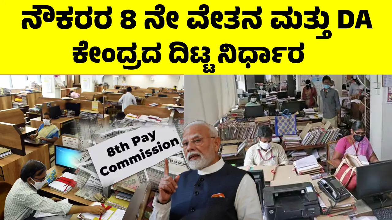 8th pay Commission And DA Merger: ಇದೀಗ ನೀವು ಕೇಂದ್ರ ಸರ್ಕಾರೀ ನೌಕರರಾಗಿದ್ದರೆ ಅಥವಾ ನಿವೃತ್ತಿ ಹೊಂದಿದವರಾಗಿದ್ದರೆ..? ಈ ಮಾಹಿತಿ ನಿಮಗೆ ಉಪಯುಕ್ತವಾಗಲಿದೆ. ಲೋಕಸಭೆಯಲ್ಲಿ ತೆಗೆದುಕೊಂಡ ನಿರ್ಧಾರದ ಪ್ರಕಾರ 8ನೇ ವೇತನ ಆಯೋಗದಲ್ಲಿ DA ಮೂಲ ವೇತನಕ್ಕೆ ಸೇರ್ಪಡೆ ಇಲ್ಲ ಅನ್ನುವ ನಿರ್ಧಾರ ತಗೆದುಕೊಳ್ಳಲಾಗಿದೆ. ಇದು ಕೇಂದ್ರ ಸರ್ಕಾರೀ ನೌಕರರ ಬೇಸರಕ್ಕೆ ಕಾರಣವಾಗಿದೆ. ಆದರೆ 8ನೇ ವೇತನ ಆಯೋಗದ ಶಿಫಾರಸ್ಸುಗಳಲ್ಲಿ ದೊಡ್ಡ ಬದಲಾವಣೆ ಆಗಬಹುದು. ಹಾಗಾದರೆ 8 ನೇ ವೇತನ ಮತ್ತು DA ಗೆ ಸಂಬಂಧಿಸಿದಂತೆ ಕೇಂದ್ರದ ಹೊಸ ನಿರ್ಧಾರ ಏನು ಅನ್ನುವುದರ ಬಗ್ಗೆ ಸಂಪೂರ್ಣ ಮಾಹಿತಿಯಿಲ್ಲಿದೆ.