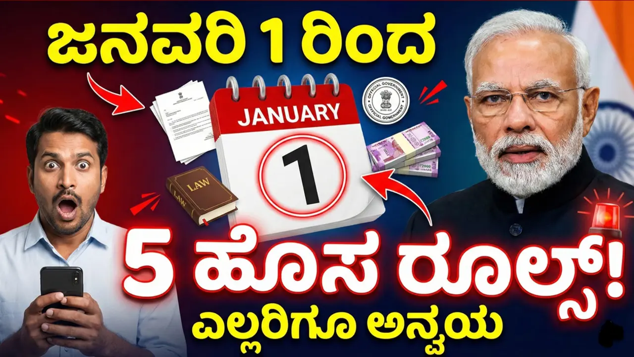 5 New Rules 2026: ದೇಶದಲ್ಲಿ ಪ್ರತಿ ವರ್ಷ ಆರಂಭದ ಜೊತೆಗೆ ಹೊಸ ಹೊಸ ನಿಯಮಗಳು ಜಾರಿಗೆ ಬರುತ್ತದೆ. ಇನ್ನೇನು ಕೆಲವೇ ದಿನದಲ್ಲಿ 2025 ಮುಗಿಯಲಿದ್ದು 2026 ರ ವರ್ಷ ಆರಂಭ ಆಗಲಿದೆ. ಸದ್ಯ 2026 ಜನವರಿ 1 ರಿಂದ ದೇಶದಲ್ಲಿ ಕೆಲವು ಹೊಸ ನಿಯಮಗಳು ಜಾರಿಗೆ ಬರುತ್ತಿದೆ. ಇದು ಸಾಮಾನ್ಯ ಜನರ ದೈನಂದಿನ ಜೀವನದ ಮೇಲೆ ಪರಿಣಾಮ ಬೀರಲಿದೆ. ಹಾಗಾದರೆ ನಾವೀಗ 2026 ರ ಆರಂಭದಲ್ಲಿ ಯಾವೆಲ್ಲ ಹೊಸ ನಿಯಮಗಳು ಜಾರಿಗೆ ಬರುತ್ತಿದೆ ಅನ್ನುವ ಬಗ್ಗೆ ಸಂಪೂರ್ಣವಾಗಿ ಮಾಹಿತಿ ತಿಳಿಯೋಣ.